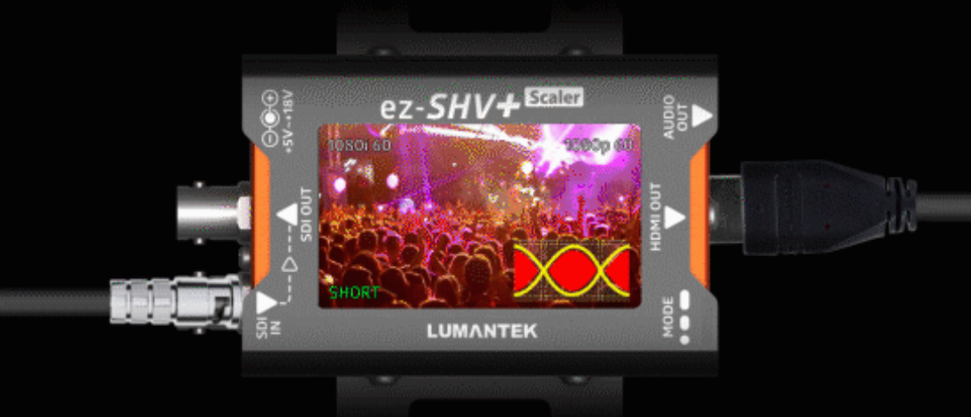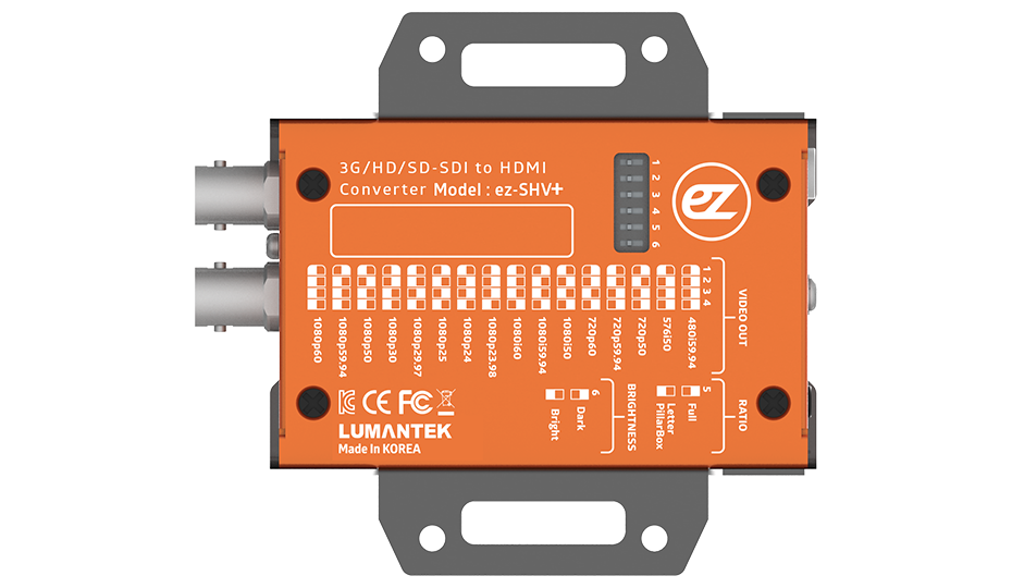 You can easily monitor I/O resolution, cable length and mesh pattern all at once. LUMANTEK ez-SHV+ has SDI LOOP output. You can monitor the incoming video through the LCD display. You can select the resolution from 480i to 1080p using the dip switch. You can also control the LCD brightness and screen ratio.